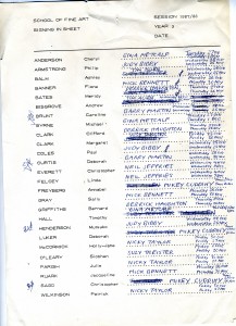Thanks to current Head of Fine Art Louis Nixon, who has looked out these great images of students from the 1980s. Included is a class list from 1987/88, included since it features the name of one of our most renowned art graduates of recent years, Fiona Banner. Please do get in touch if any of these images look familiar or spur your own memories of Fine Art at Knights Park!